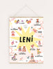 Dieses Poster ist perfekt für jedes Kinderzimmer und lässt sich individuell gestalten. Wähle einfach deinen Personalisierungswunsch aus und gib ihn beim Bestellvorgang an. Das Poster enthält leserliche Schriftarten, die selbst für junge ABC-Schützen gut lesbar sind, und ist durch seine kindgerechten Illustrationen besonders ansprechend.